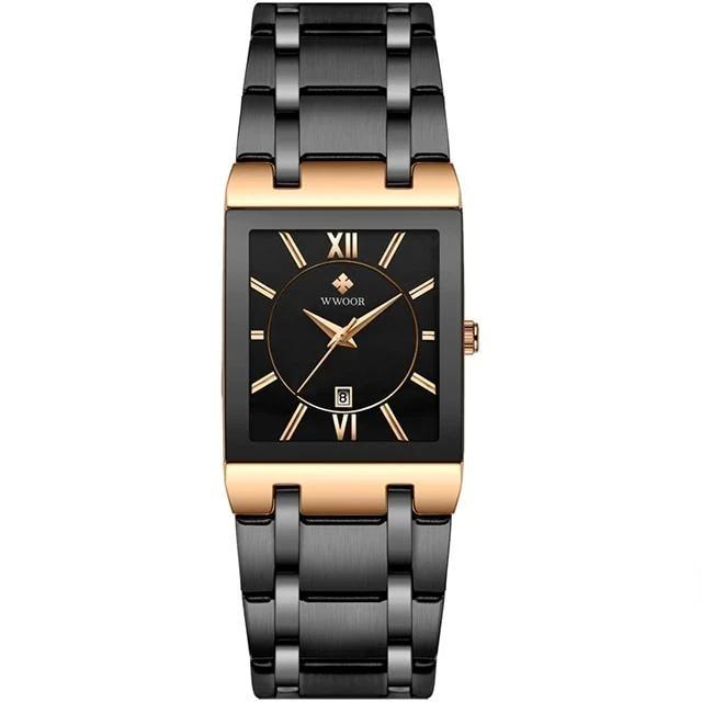 As a watch enthusiast,i have to say this is a sincerity product of WWOOR,i had a wwoor 8019 before,the gold plating of this wwoor 8858 have a big upgrade on the watch band,we can see the pictures,the gold plating is full of the watch bands,even and shiny. Stylish square design,Equipped with Japanese movement and battery,According to my experience, I think, it should be able to use for about two years,i think it is a perfect gift for a gentleman.seller send a tool with the watch,it can easily to shorten the watch band.seller even prepare a video to show how to use the tool,if you want ,you can ask him to get it.the watch is worth the money,to sum up, I recommend this product and this seller, it's worthy of trust!